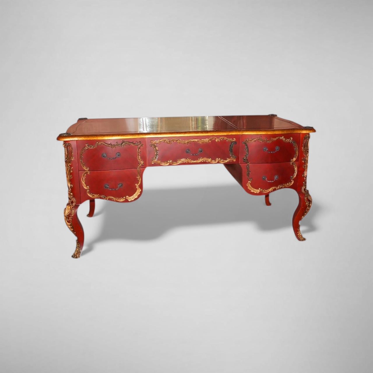 Exklusiver Barock Schreibtisch | Massivholz & Blattgold – Prachtvoll & Handgefertigt
