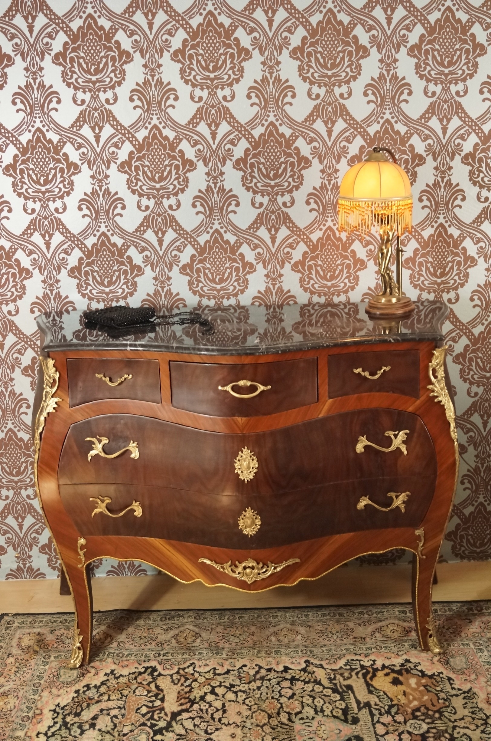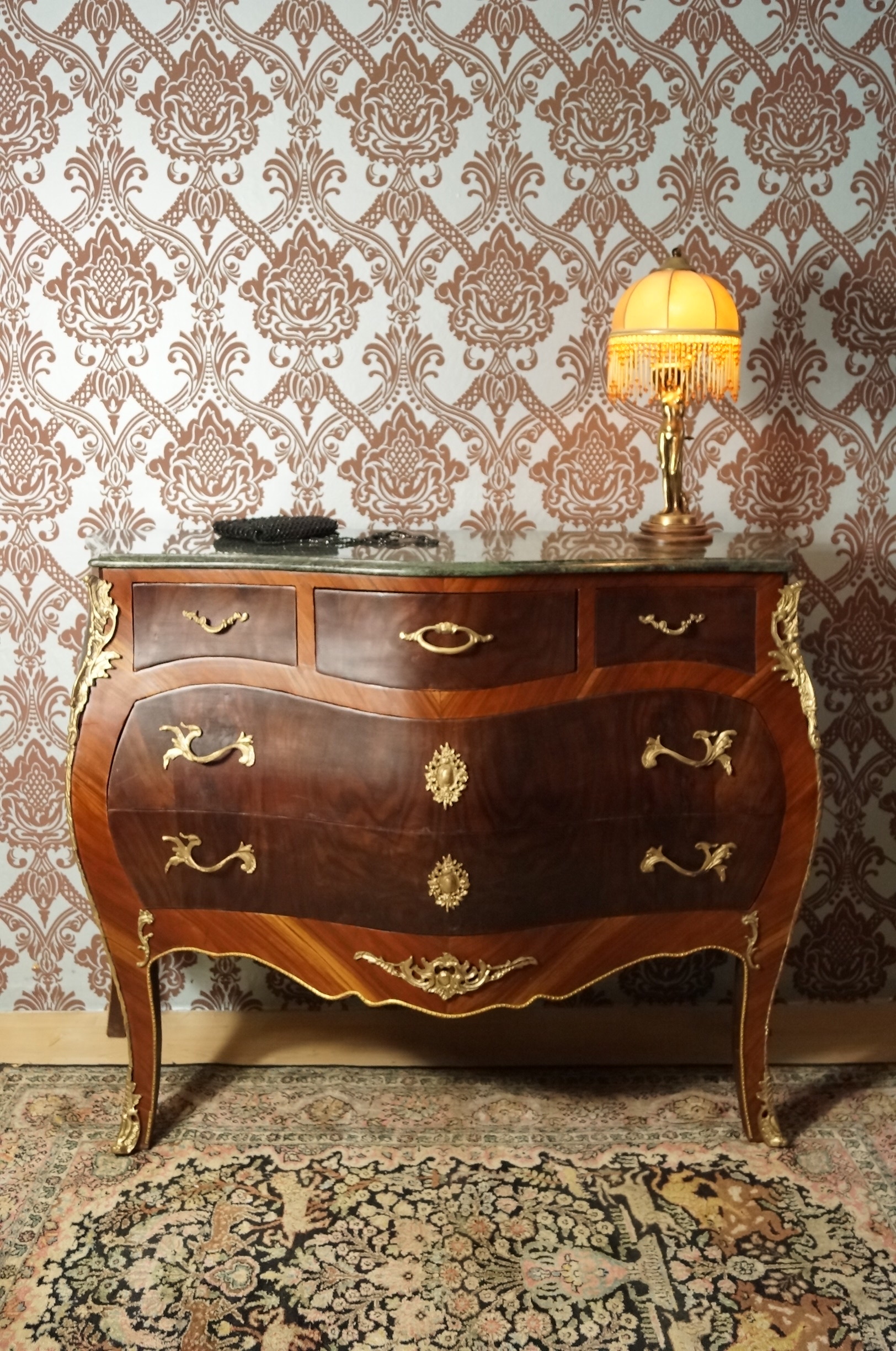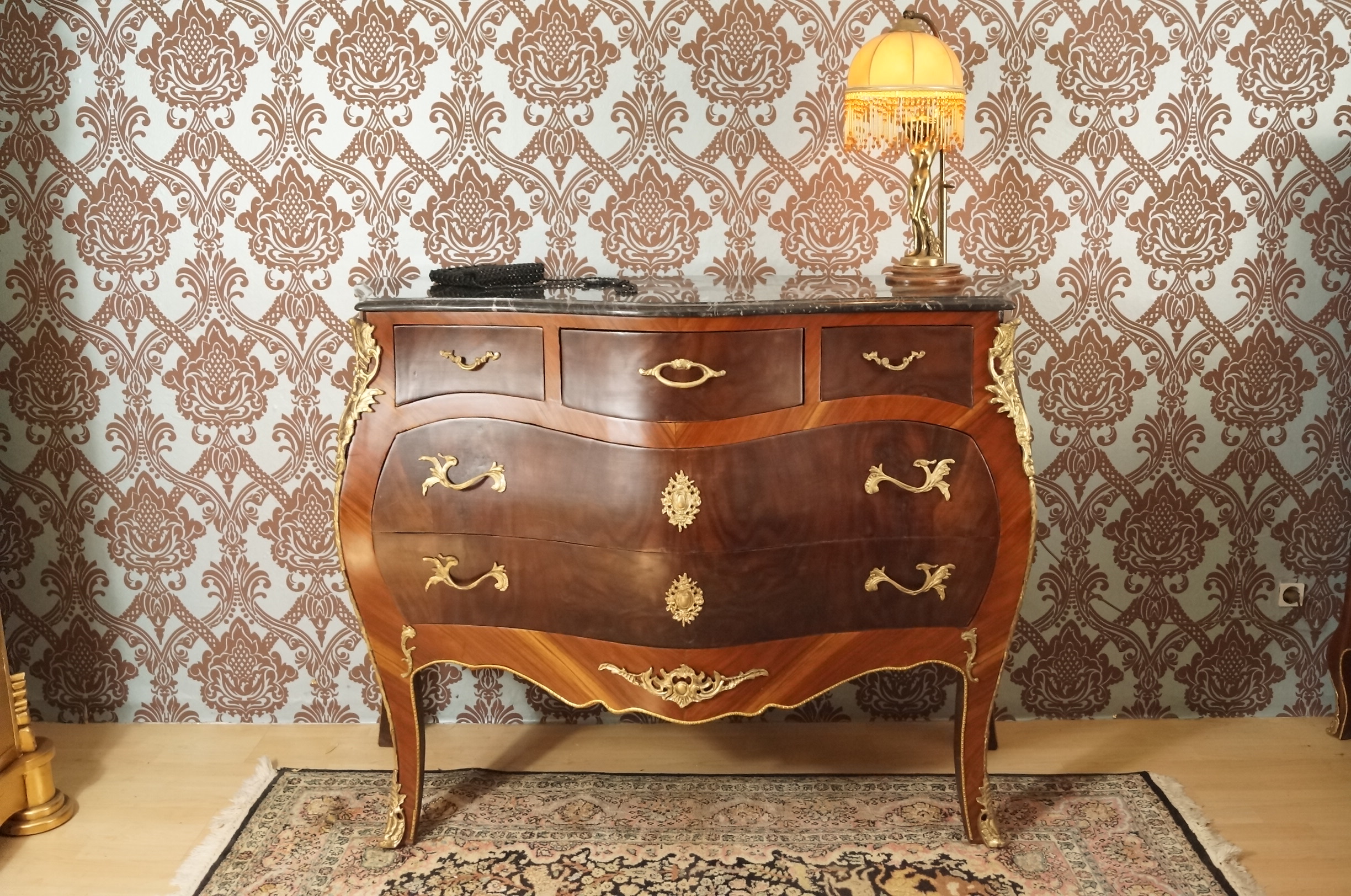 SPLENDID GRAND CHIFFONNIER COMMODE STYLE BAROQUE LOUIS XV PLATEAU EN MARBRE E8-3