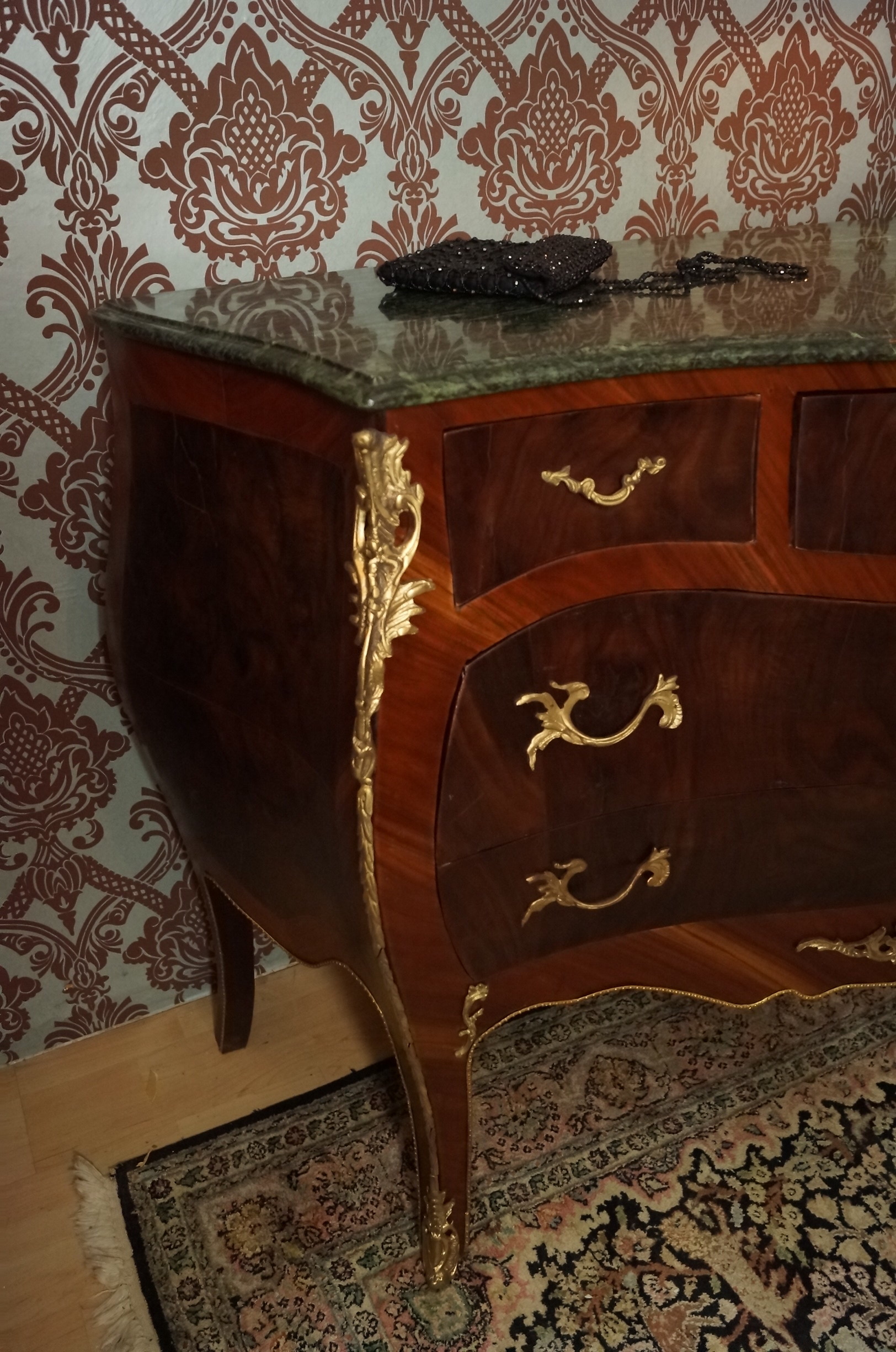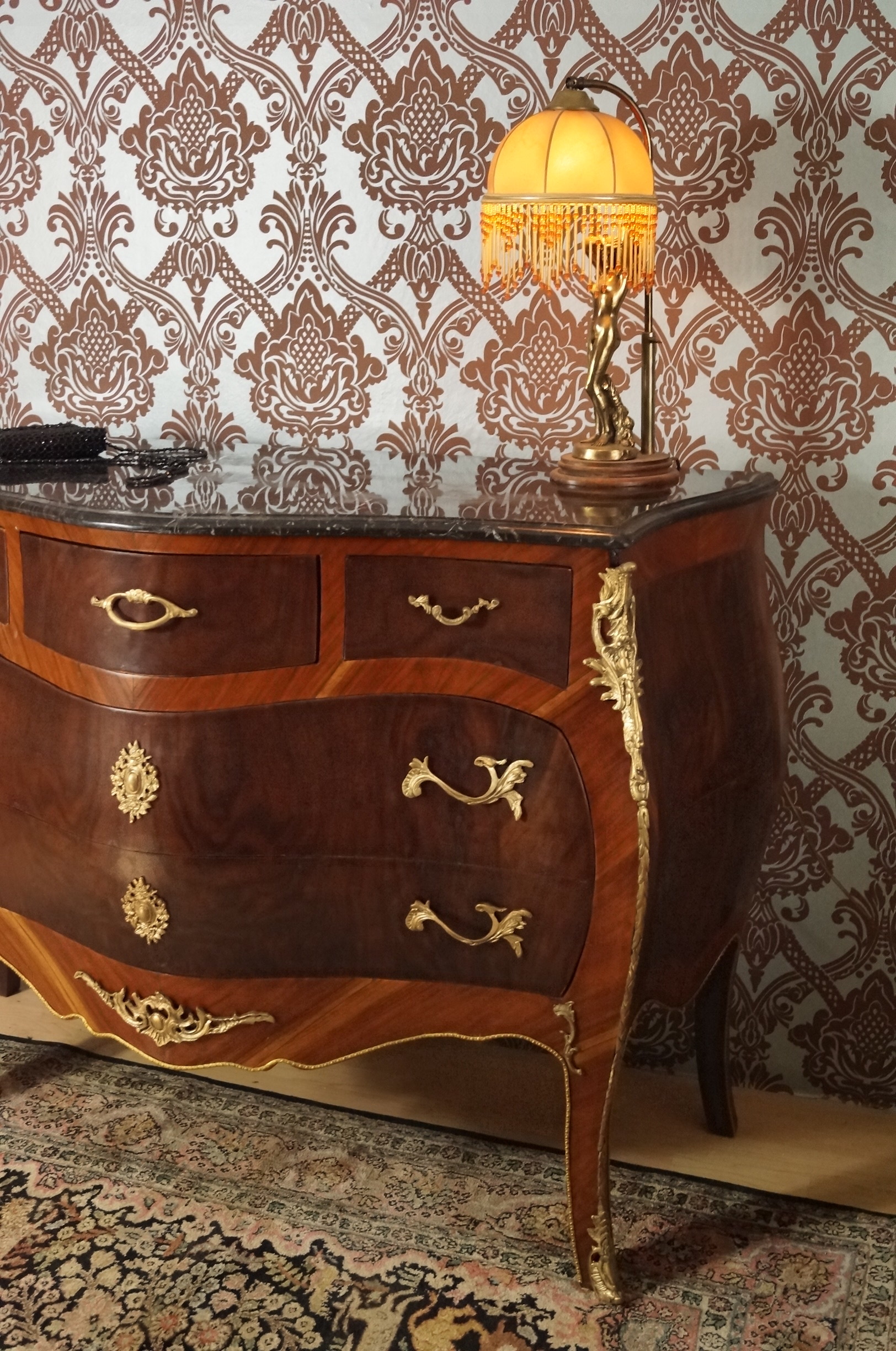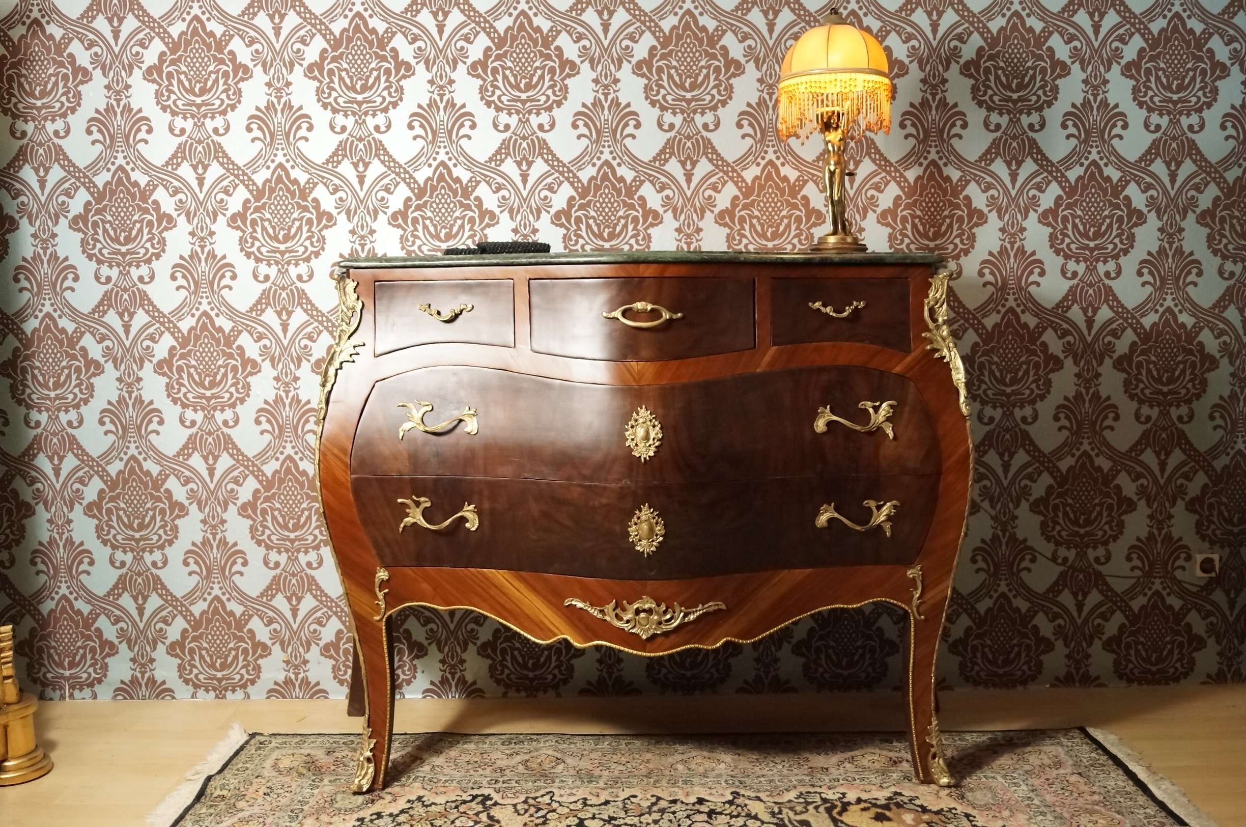 SPLENDID GRAND CHIFFONNIER COMMODE STYLE BAROQUE LOUIS XV PLATEAU EN MARBRE E8-3